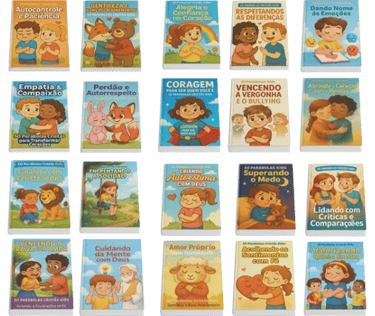 Um compilado exclusivo de parábolas cristãs que ajudam a criança a entender e enfrentar sentimentos como medo, tristeza, solidão, estresse e outros desafios emocionais.