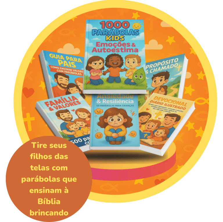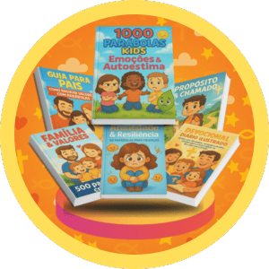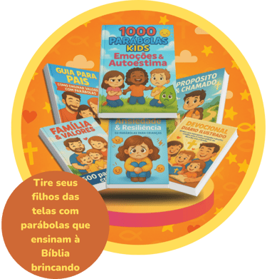 +2400 parábolas prontas, ilustradas e cheias de valor espiritual — para ajudar você a formar crianças com amor, propósito e presença de Deus, mesmo nos dias mais difíceis.